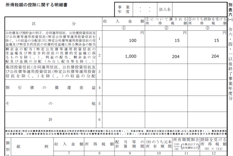 これを所得税額控除といいます。当期が黒字の時は法人税額から控除されますが、当期が赤字の場合には控除できないので還付されます。(今還付された場合の金額が前述した所得税額等及び欠損金の繰戻しによる還付金額等(19)欄に記載されるということになります。)