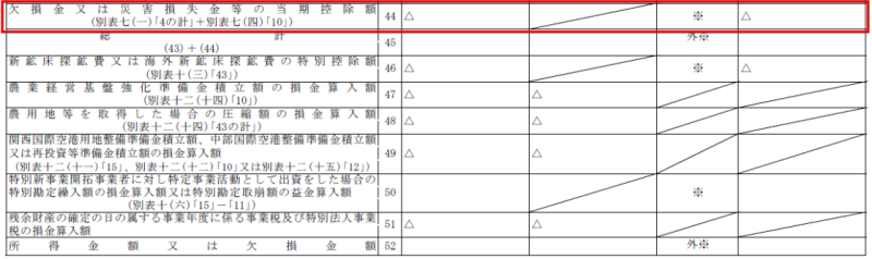 欠損金又は災害損失金等の当期控除額=(44)欄