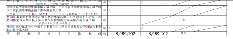 欠損金の繰越控除の適用を受けた場合に総額欄と社外流出(※)欄に記載します。