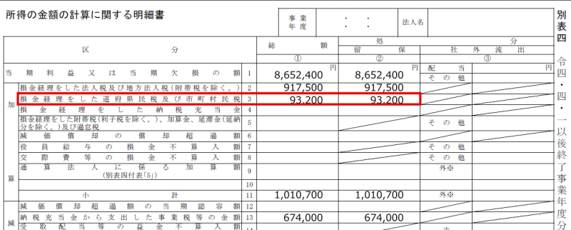 【加算欄】損金経理をした道府県民税及び市町村民税=(3)欄