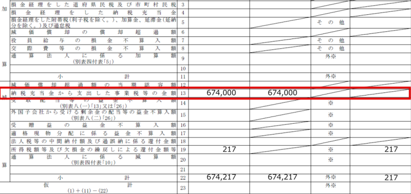 【減算欄】納税充当金から支出した事業税等の金額=(13)欄