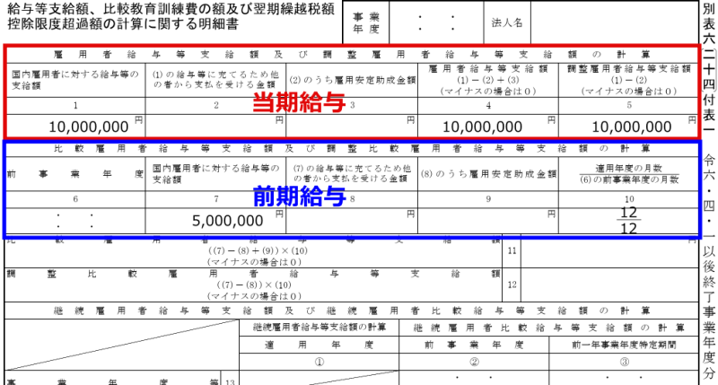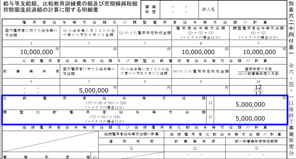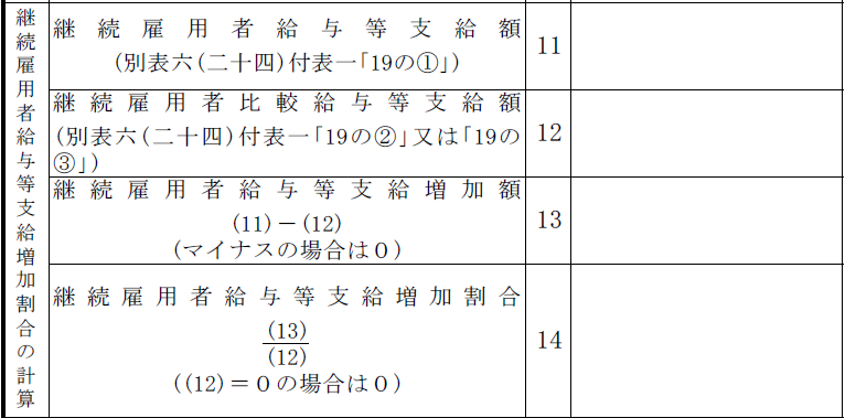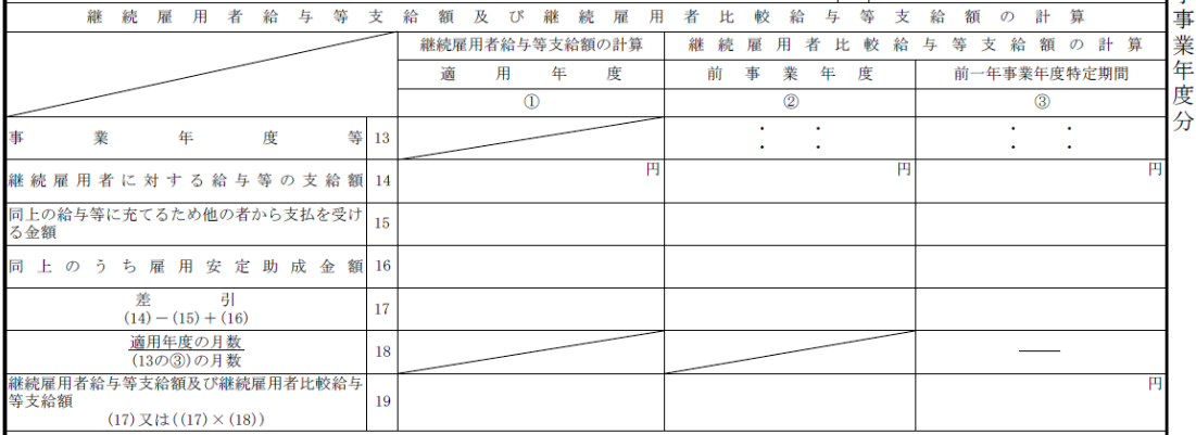 継続雇用者給与等支給額及び継続雇用者比較給与等支給額の計算欄
