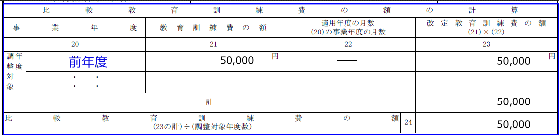 21欄には、「前年度」の教育訓練費の額を記載します。