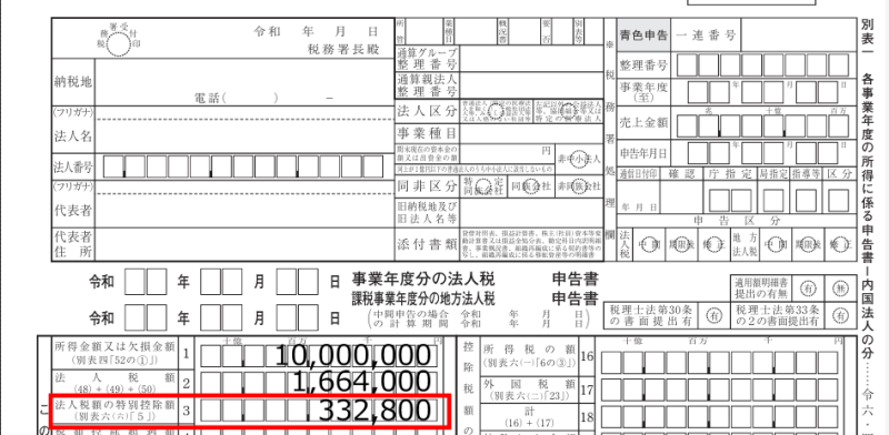 上記で求めた最終値は、法人税申告書別表一の3欄「法人税額の特別控除額」に記入します。